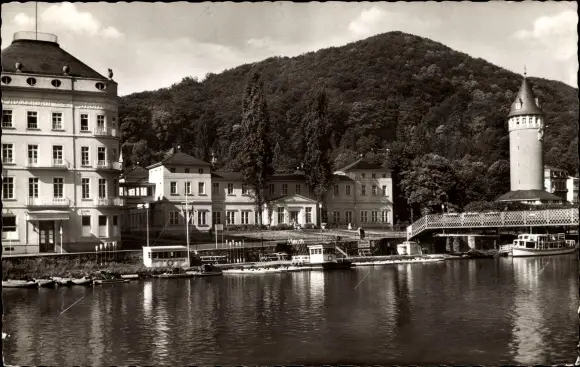 Ak Bad Ems an der Lahn, Lahnpartie, Kurmittelhaus, Wasserturm