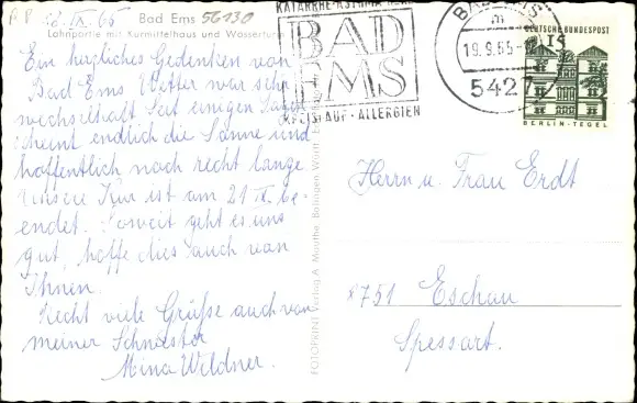 Zustand, siehe Scan, gelaufen, 1955 - ca 14 cm X 9 cm