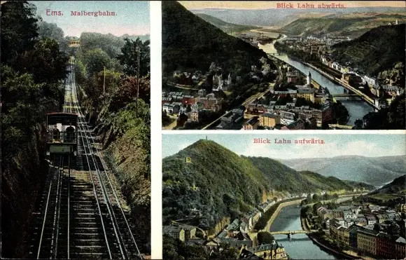 Ak Bad Ems an der Lahn, Malbergbahn, Panorama