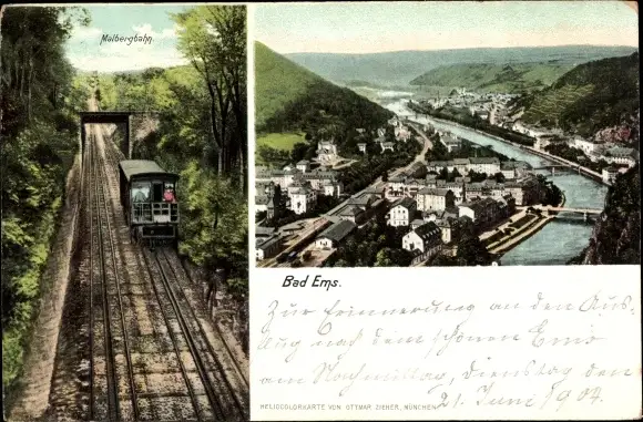 Ak Bad Ems an der Lahn, Malbergbahn, Panorama