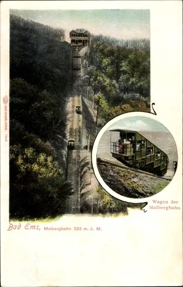 Ak Bad Ems an der Lahn, Malbergbahn, Standseilbahn