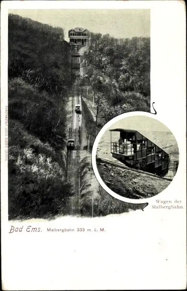 Ak Bad Ems an der Lahn, Malbergbahn, Wagen der Malbergbahn