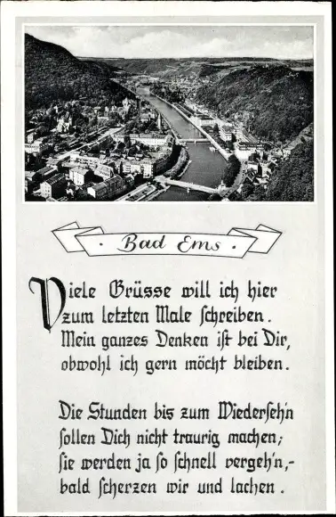 Ak Bad Ems an der Lahn, Panorama, Gedicht