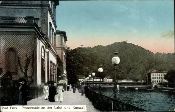 Ak Bad Ems an der Lahn, Promenade an der Lahn und Kursaal