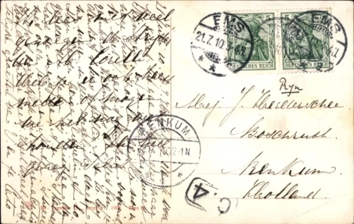 Zustand, siehe Scan, gelaufen, 1910 - ca 14 cm X 9 cm
