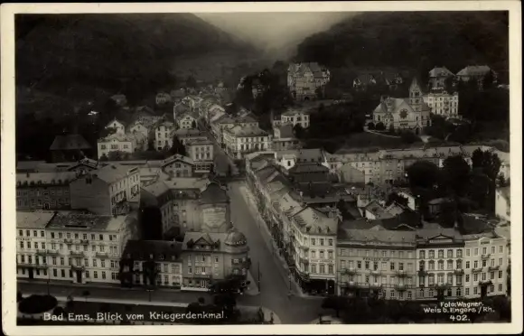 Ak Bad Ems an der Lahn, Totalansicht, Kriegerdenkmal