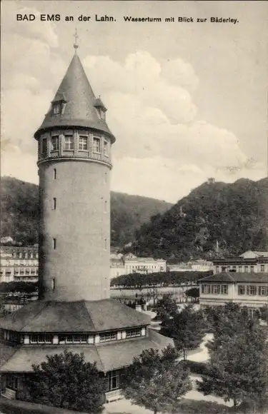 Ak Bad Ems an der Lahn, Wasserturm, Bäderley