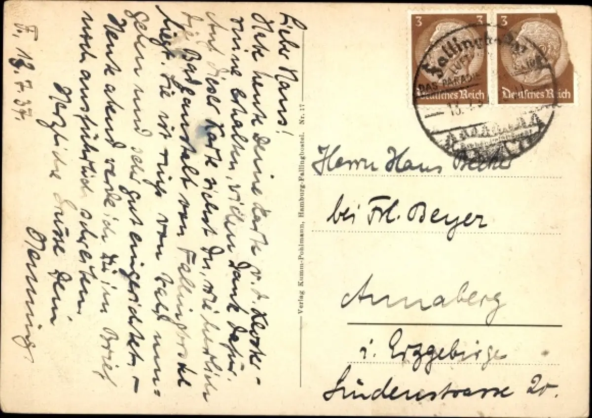 Zustand, siehe Scan, gelaufen, 1937 - ca 15 cm X 11 cm