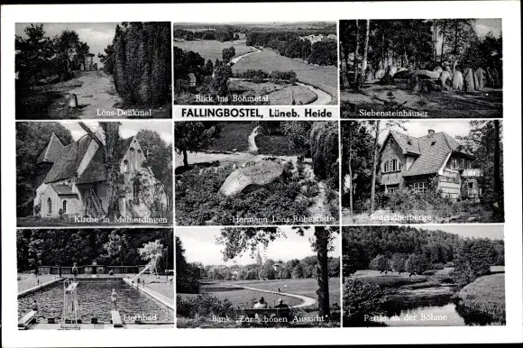 Ak Bad Fallingbostel Lüneburger Heide, Siebensteinhäuser, Jugendherberge, Hermann Löns Ruhestätte