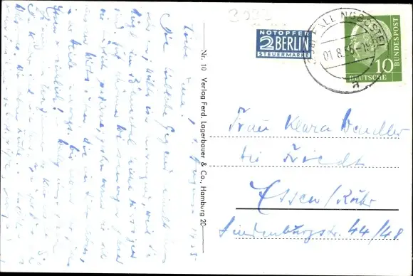 Zustand, siehe Scan, gelaufen, 1955 - ca 14 cm X 9 cm