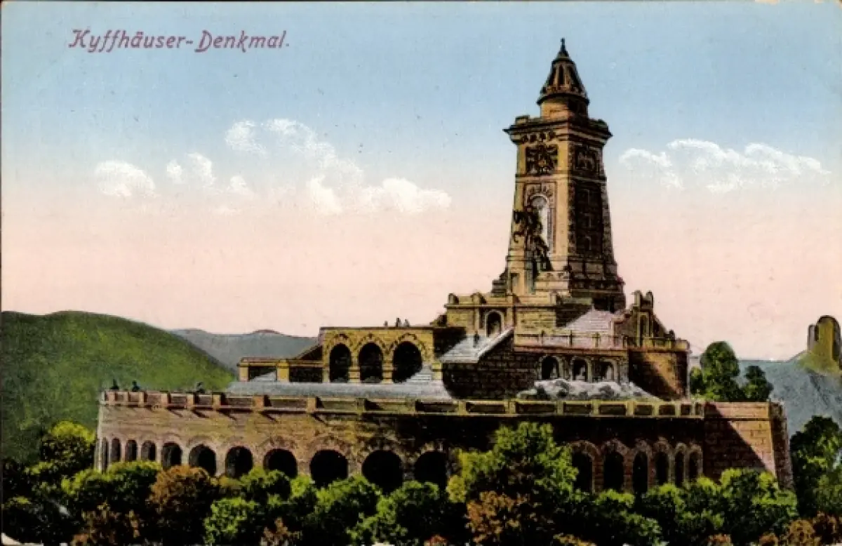 Ak Bad Frankenhausen am Kyffhäuser Thüringen, Kyffhäuser-Denkmal, Berglandschaft,