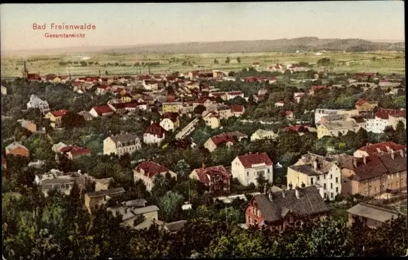 Ak Bad Freienwalde an der Oder, Gesamtansicht der Stadt und Umland mit Feldern