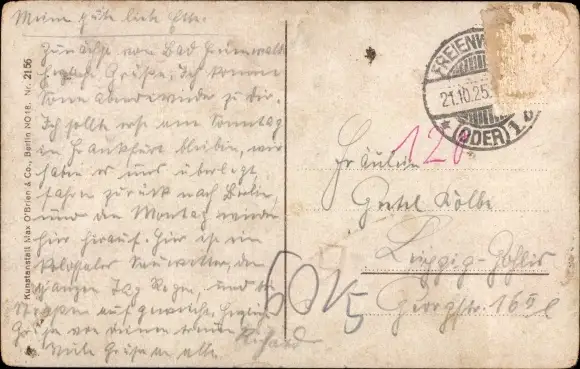 Zustand, siehe Scan, gelaufen, 1925 - ca 14 cm X 9 cm