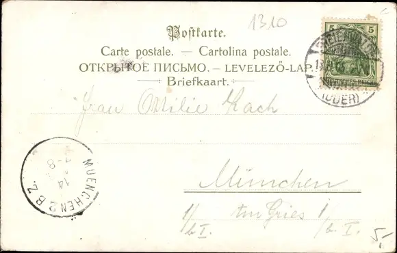 Zustand, siehe Scan, gelaufen, 1905 - ca 14 cm X 9 cm