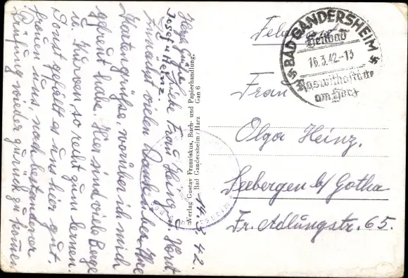 Zustand, siehe Scan, gelaufen, 1942 - ca 14 cm X 10 cm
