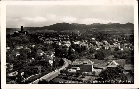 Ak Bad Godesberg Bonn am Rhein, Blick auf den Ort mit Godesburg und Siebengebirge