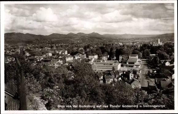 Ak Bad Godesberg Bonn am Rhein, Blick v. d. Godesburg a. d. Theater Godesberg u. Siebengebirge