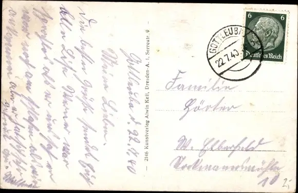 Zustand, siehe Scan, gelaufen, 1940 - ca 14 cm X 9 cm