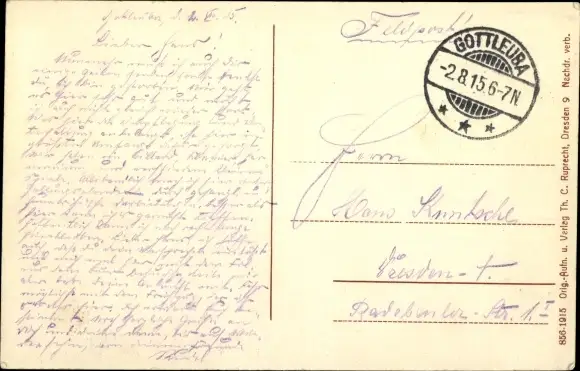 Zustand, siehe Scan, gelaufen, 1915 - ca 14 cm X 9 cm