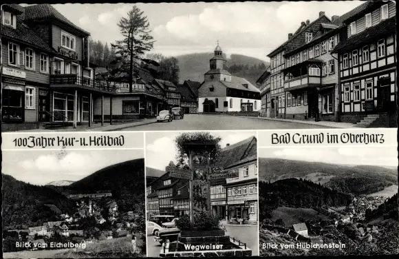 Ak Bad Grund im Harz, Eichelberg, Wegweiser, Hübichenstein