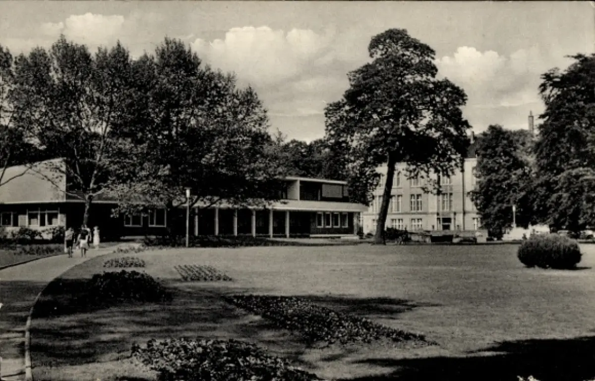 Ak Bad Hamm in Westfalen, Klinik für manuelle Therapie, Bäume, Rasenfläche, Spaziergänger