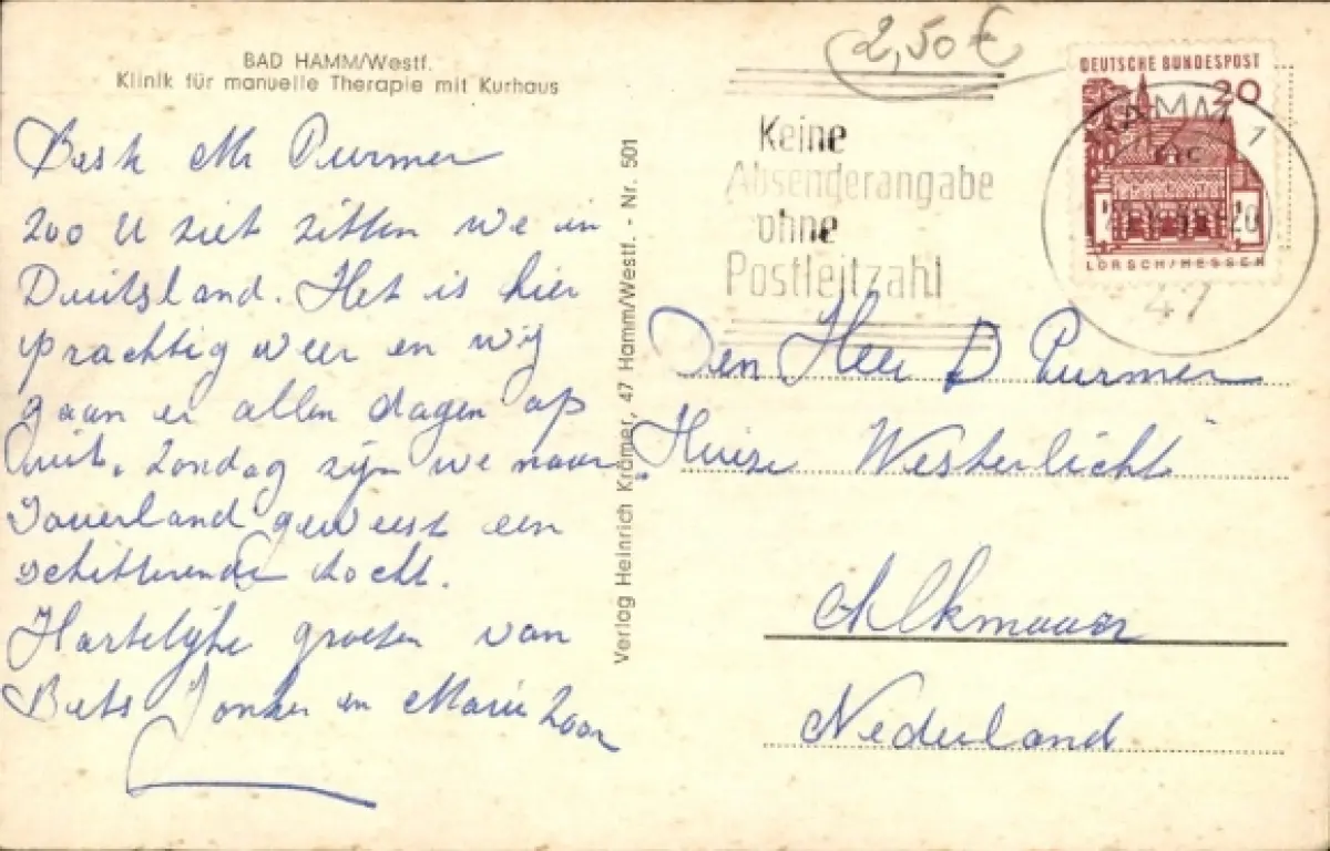Von meiner Bestellung am Dienstag 12.01.2026 um 20:52 Uhr und Überweisung des Betrags am gleichen Tag um 22:26 Uhr bis zur Ankunft der Ansichtskarte bei mir am 21.01.2026 um ca. 14:00 Uhr dauert der gesamte Vorgang rd. 9 Tage - es wäre wünschenswert, wenn diese Zeiten dazwischen sich verkürzen ließen - Danke und Gruß - Heinz Vorderwülbecke (andere Ansichtskartenverkäufer sind da wesentlich schneller).