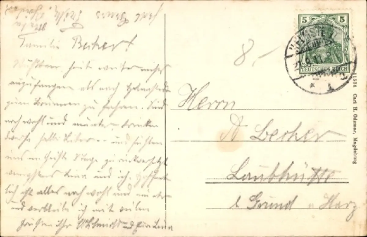 Zustand siehe Scan, gelaufen, 1911 - ca 14 cm X 9 cm