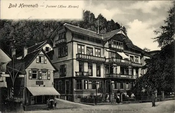 Ak Bad Herrenalb im Schwarzwald, Postamt, Haus Harzer