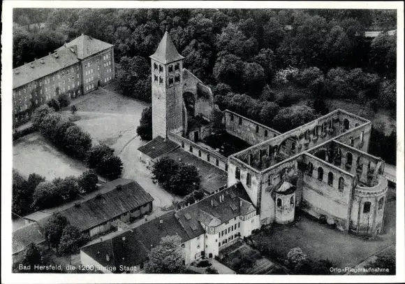 Ak Bad Hersfeld Hessen, Kirche aus der Vogelschau