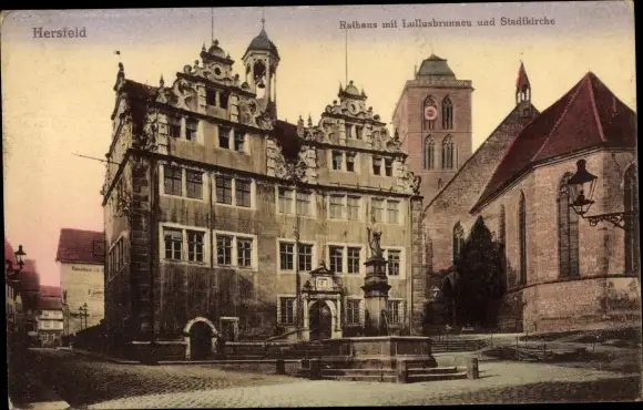 Ak Bad Hersfeld Hessen, Rathaus, Lullusbrunnen, Stadtkirche
