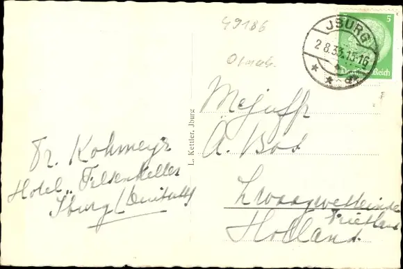 Zustand, siehe Scan, gelaufen, 1933 - ca 14 cm X 9 cm
