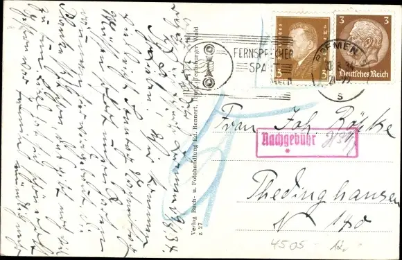 Zustand, siehe Scan, gelaufen, 1934 - ca 14 cm X 9 cm