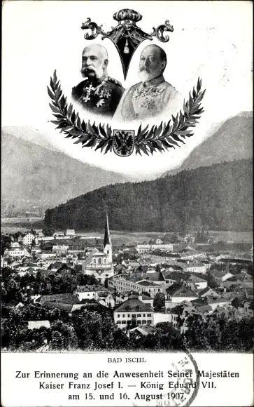 Ak Bad Ischl in Oberösterreich, Kaiser Franz Joseph I., König Edward VII, Stadtansicht