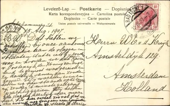 Zustand, siehe Scan, gelaufen, 1907 - ca 9 cm X 14 cm