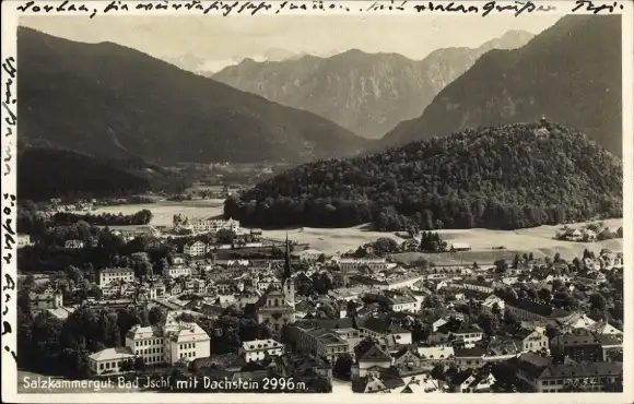 Ak Bad Ischl in Oberösterreich, Landschaftsaufnahme, Städtische Häuser, Kirche, Bergpanorama, ...
