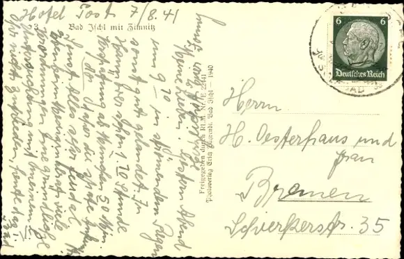 Zustand, siehe Scan, gelaufen, 1941 - ca 14 cm X 9 cm