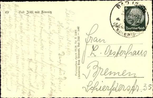 Ak Bad Ischl in Oberösterreich, Totale mit Zimnitz