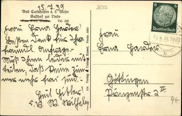 Ak Bad Karlshafen an der Weser, Gasthof zur Linde, Inh. Wwe. Schäfer