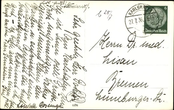 Zustand, siehe Scan, gelaufen, 1936 - ca 14 cm X 9 cm