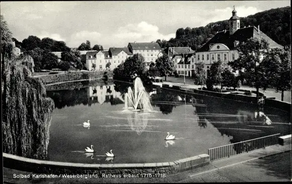 Ak Bad Karlshafen an der Weser, Teich, Rathaus