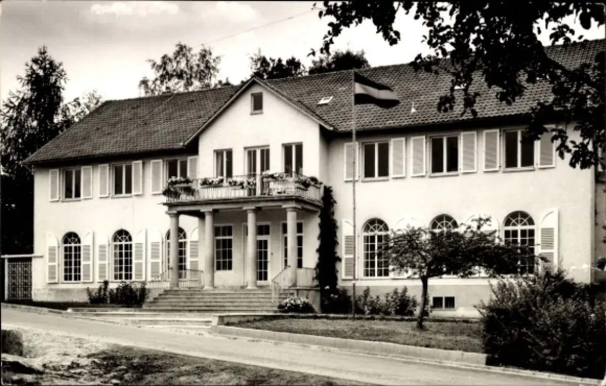 Ak Bad Kissingen Unterfranken Bayern, Haus mit Säulen, Flagge, Fenster, Garten, Straße