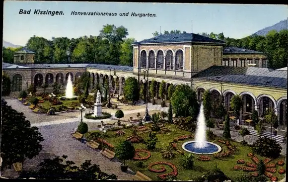 Ak Bad Kissingen Unterfranken Bayern, Konversationshaus, Kurgarten, Springbrunnen