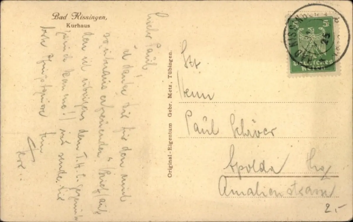 Zustand, siehe Scan, gelaufen, 1925 - ca 14 cm X 9 cm