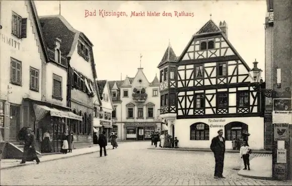 Ak Bad Kissingen Unterfranken Bayern, Markt hinter dem Rathaus, Geschäfte