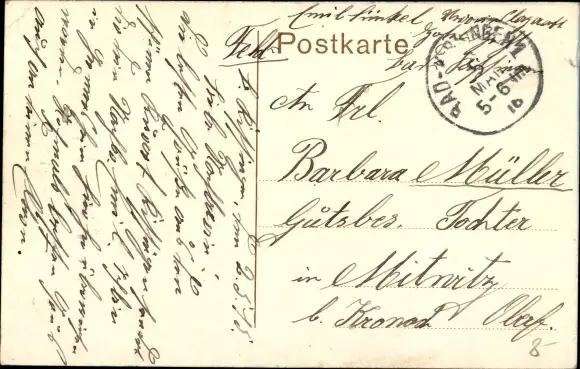 gelaufen 1916, Eckknick rechts oben, Stempelspur, sonst guter Zustand