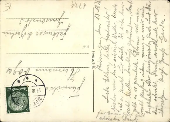 gelaufen 1936, Eckknicke, fleckig, sonst guter Zustand