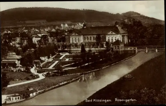 Ak Bad Kissingen Unterfranken Bayern, Rosengarten, Fluss, Brücke