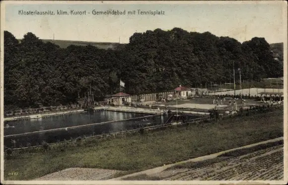 Ak Bad Klosterlausnitz in Thüringen, Gemeindebad mit Tennisplatz