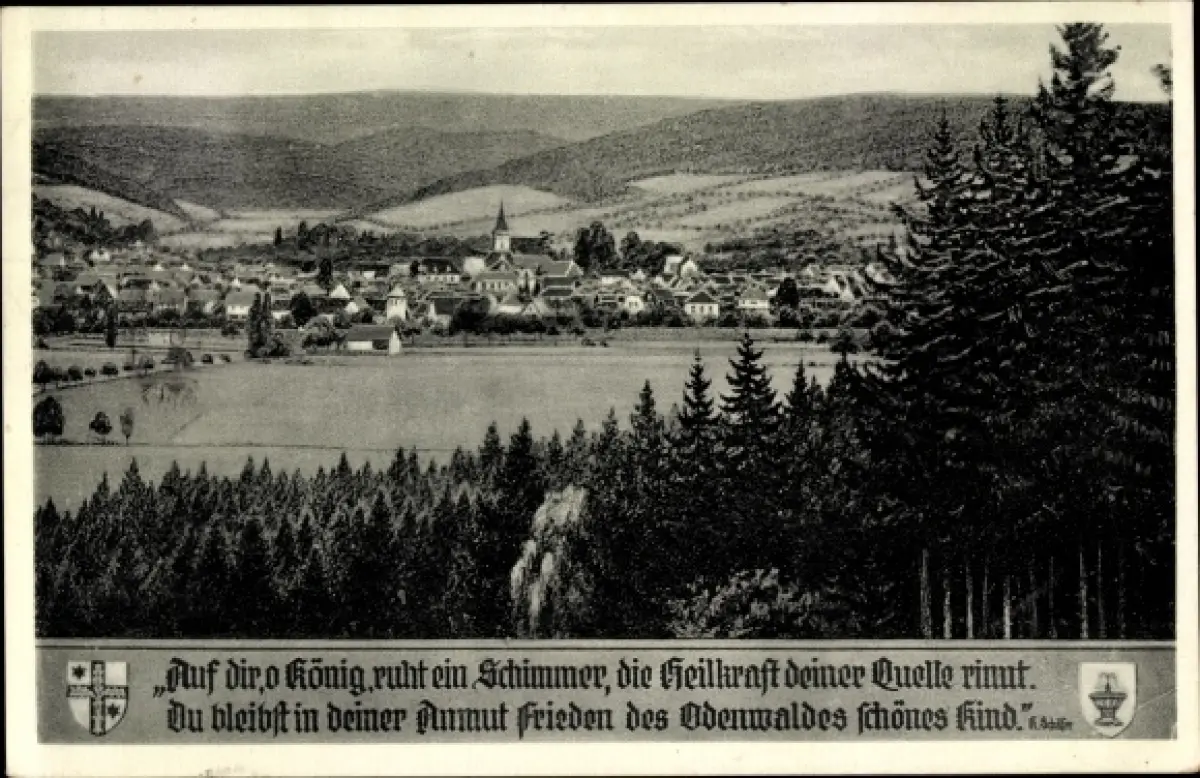 Ak Bad König im Odenwald Hessen, Panorama, Spruch