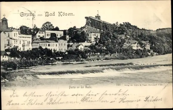 Ak Bad Kösen Naumburg an der Saale, Teilansicht an der Saale, Gradierwerk